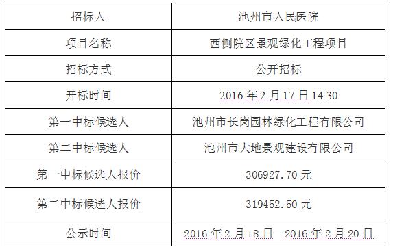 池州市人民医院西侧院区景观绿化工程项目评审结果公示