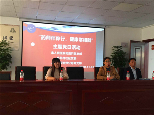 为加强党支部的能力建设,强化责任担当,推动党建和业务的深度融合,提高基层党组织的凝聚力、战斗力,在院党委和医技总支的指导下,在杏花村社区党委的大力支持下,药剂科党支部联合上药控股池州公司党支部药师充分利用专业优势,开展“药师伴你行、健康常相随”主题党日活动,组织党员走进社区,为居民提供合理用药科普讲座。