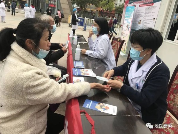 3月19号池州市人民医院感染科党支部在严格执行疫情防控措施下,在门诊广场上举行了“世界防治结核病日”宣传活动。活动现场,感染科医护人员接受咨询、发放健康手册等多种形式,呼吁主动关爱、关注结核病人,共建和谐社会。感染科主任朱艳,感染科党支部书记刘晓玲,护士长袁娟等感染科全体医护团队共同参与了本次活动。