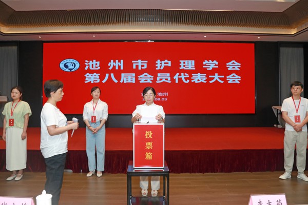 2024年8月3日,池州市护理学会第八次会员代表大会胜利召开。池州市卫生健康委党组书记、主任、二级巡视员刘保权,安徽省护理学会副理事长、秘书长李志菊,池州市人民医院党委书记吴有福,池州市科协党组成员、专职副主席余德海,池州市民政局社会组织管理局局长、四级调研员包明胜出席会议。开幕式由池州市护理学会理事长钱立芳主持。来自全市各医疗机构、高校会员代表219人参加大会。